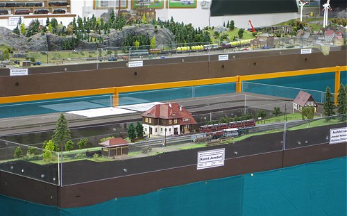 Was gab es nun im Jahr 2012 an Neuigkeiten zu entdecken? Erstmalig konnten die kleinen Modellzüge auf der Anlage mit den Streckenteilen der Zittauer Schmalspurbahn den neu erbauten Bahnhof Jonsdorf anfahren. Hier stellte eine Pendelautomatik mit Triebwagen die bekannten Doppelausfahrten aus dem Bahnhof Bertsdorf im Modell sicher.